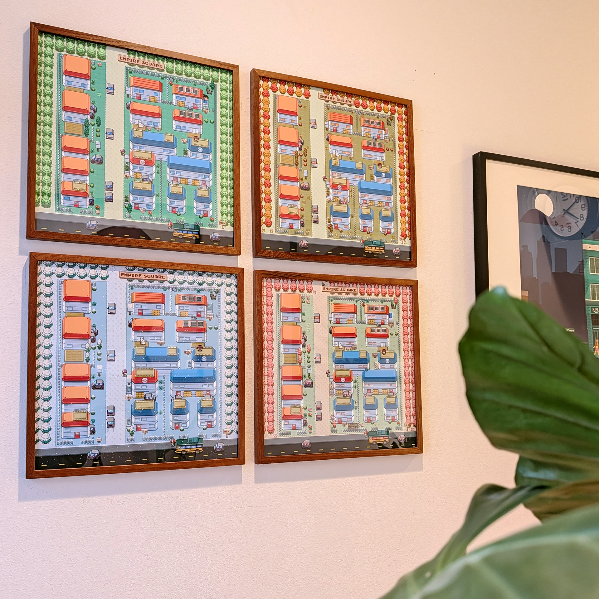 To explore how environmental storytelling can evolve over time, I created four seasonal variations of the same map: summer, autumn, winter, and spring. Subtle changes in foliage, weather, and environmental details bring the neighborhood to life across different times of year.