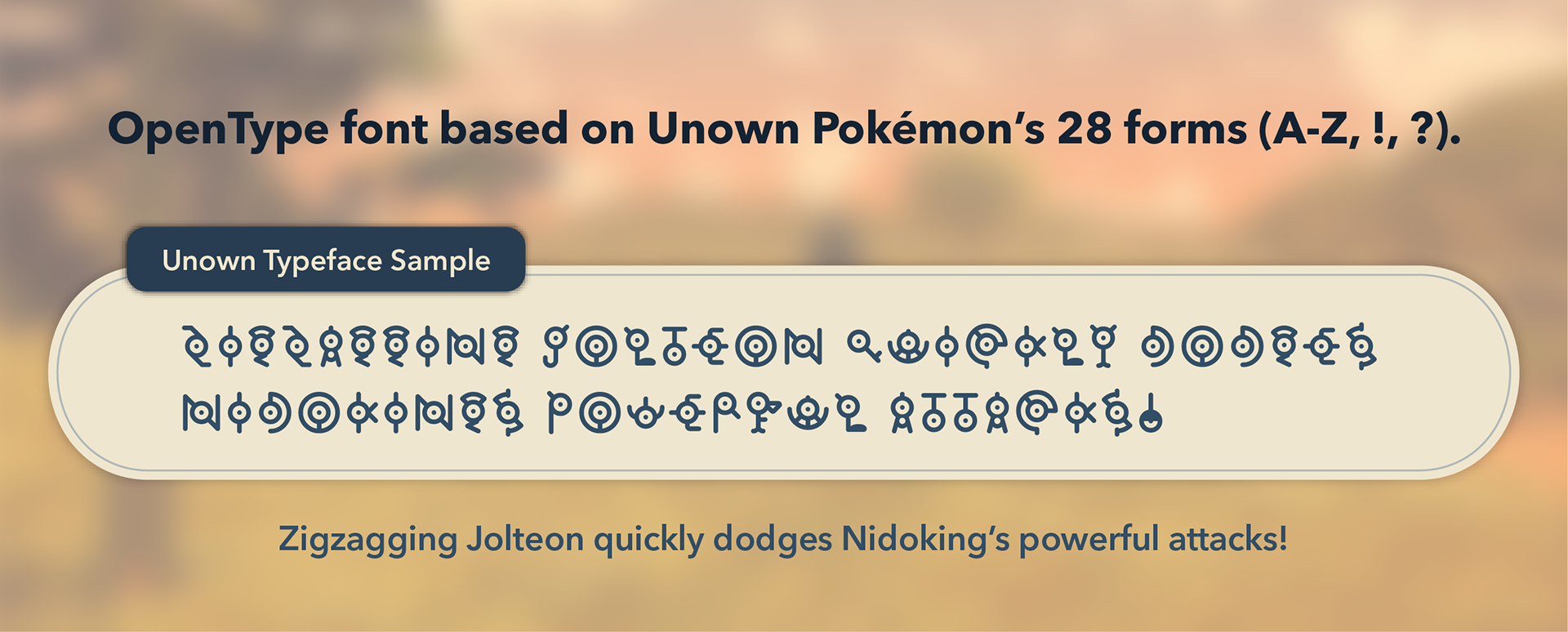 One component of this project included developing an OpenType font inspired by the 28 forms of Unown.