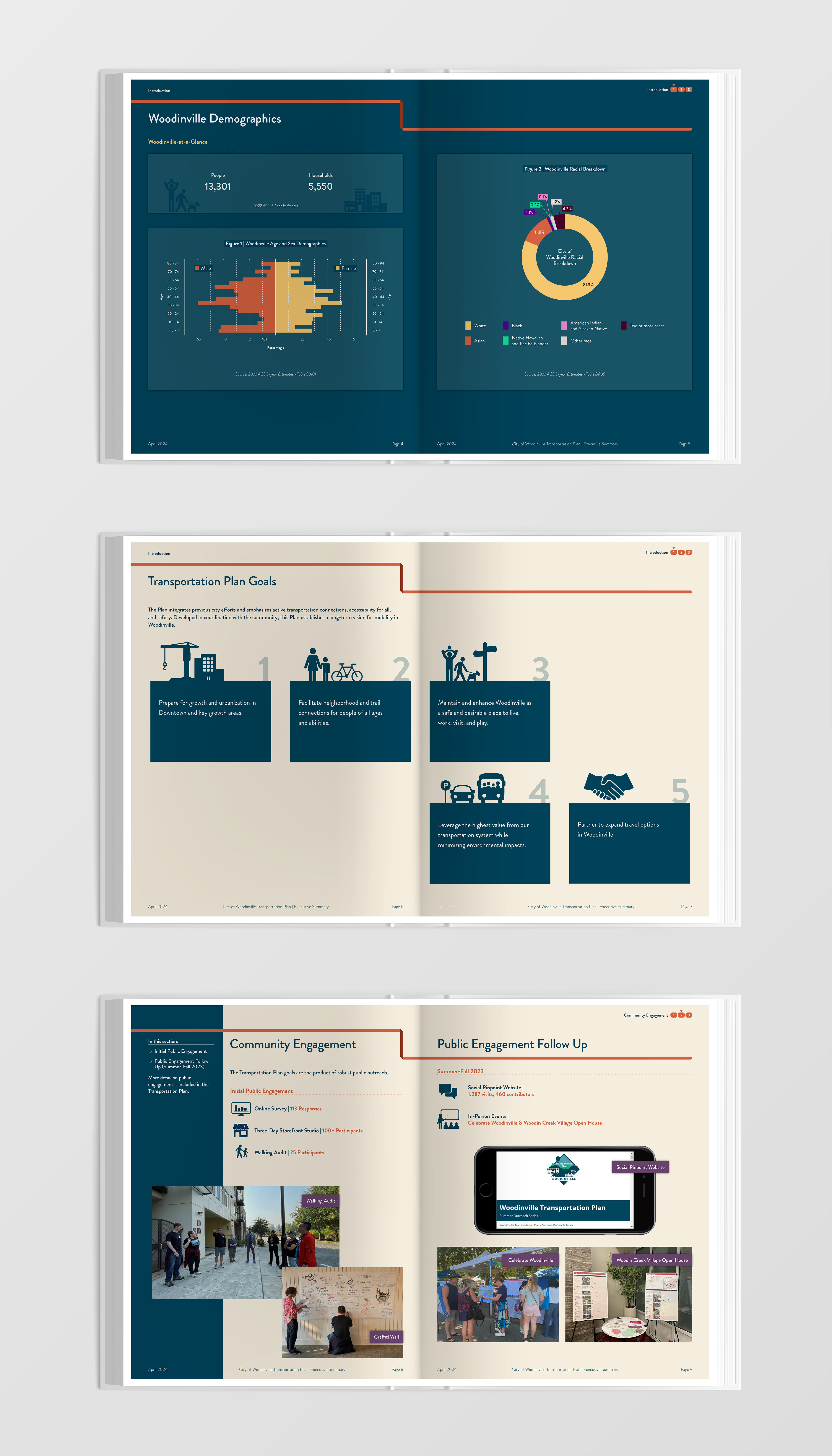 The project also includes a logo and full layout design for the Transportation Plan, all cohesively tied together by a consistent design language.